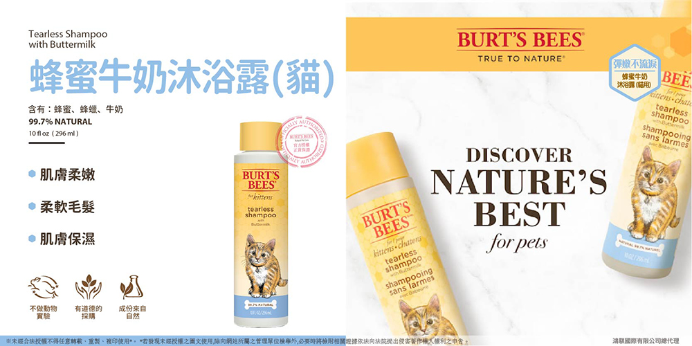 Burt's Bees® 低致敏寵沐浴露用大自然特好的成分自然清潔皮毛