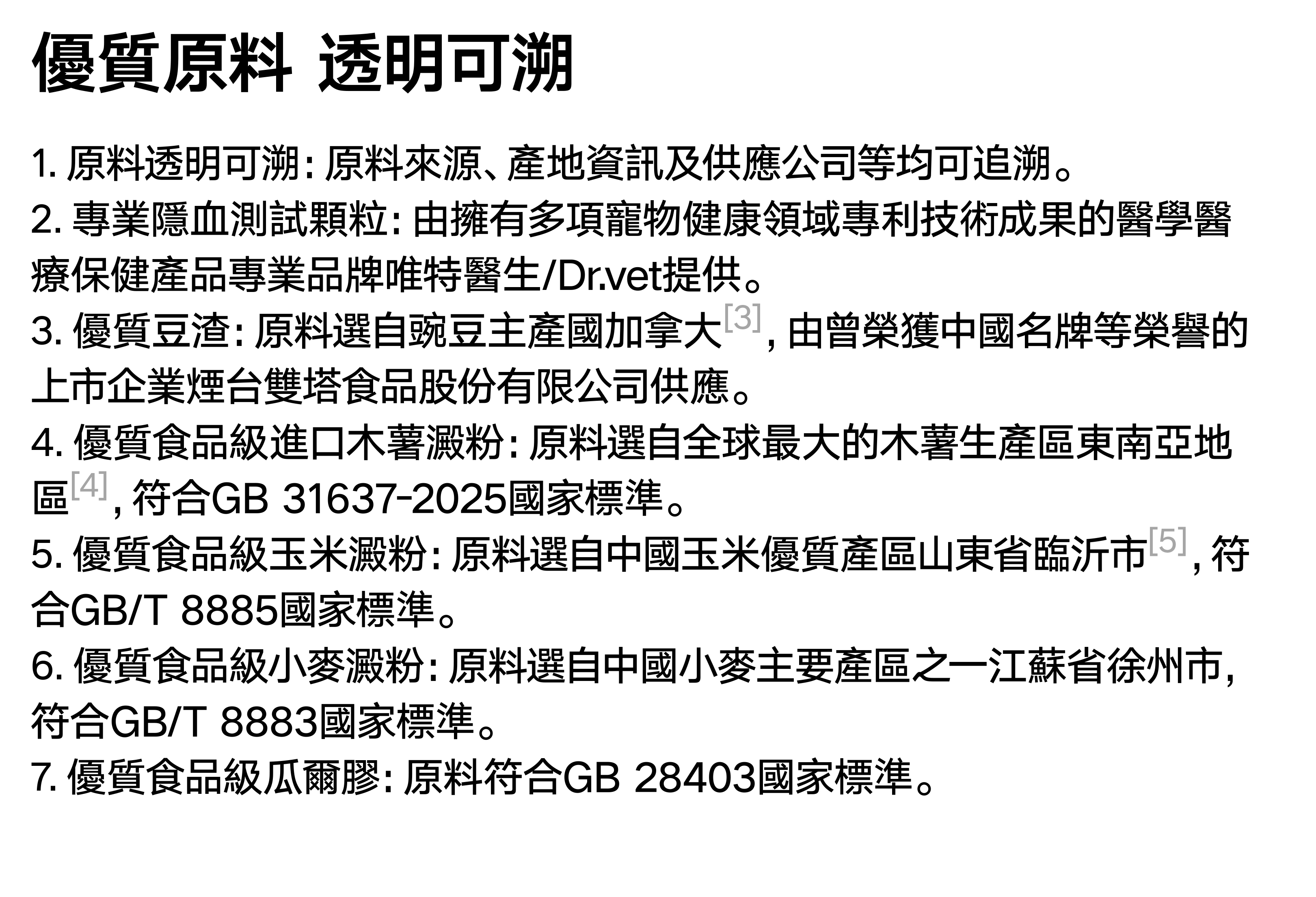 材質 : 食品級豆渣、澱粉、瓜爾豆膠
