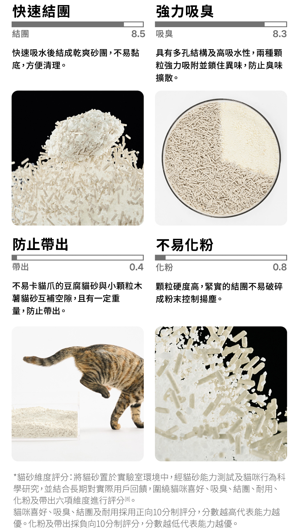 ● 70%豆腐貓砂迅速吸臭 不卡貓爪