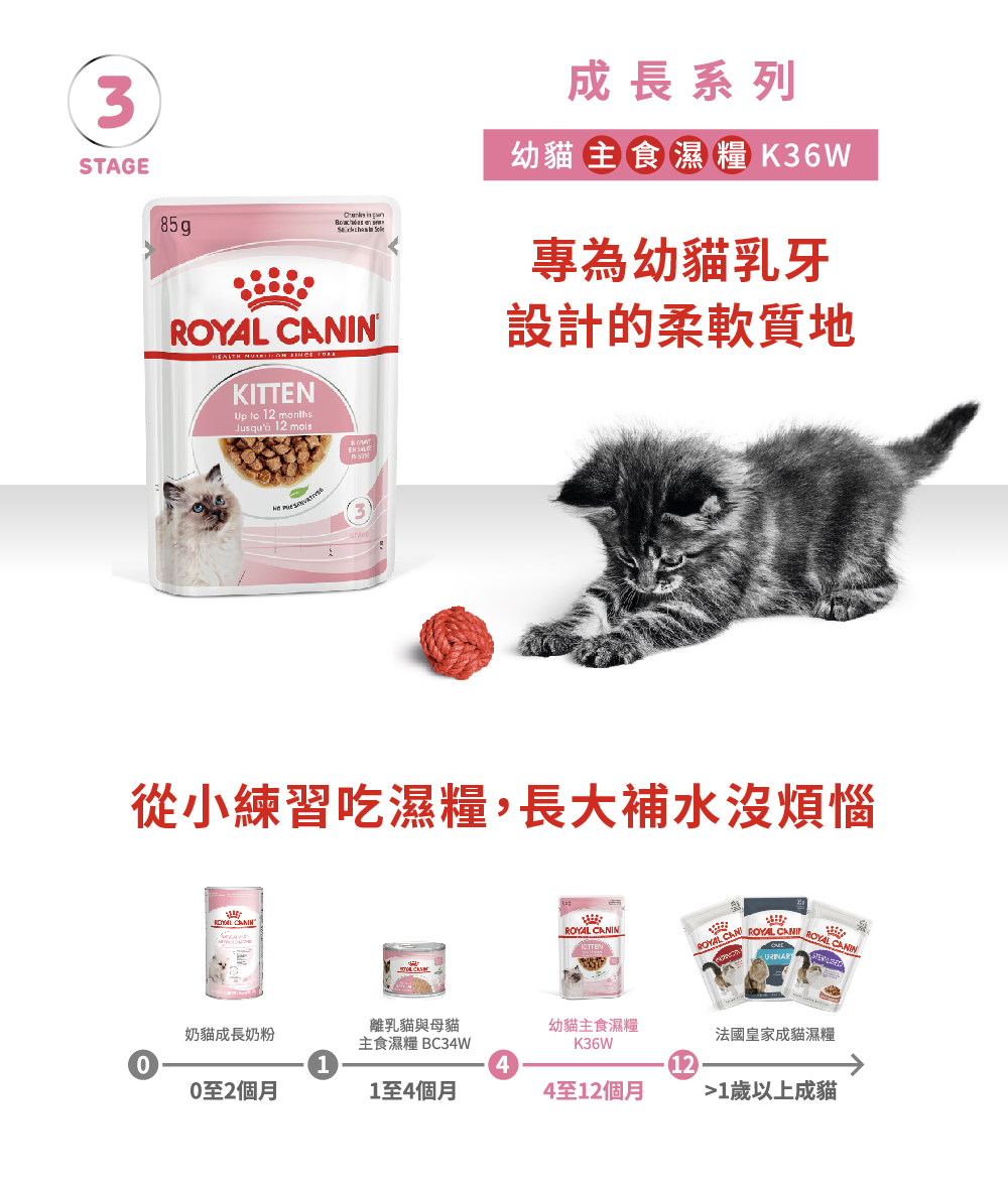 ● 專為幼貓乳牙設計的柔軟質地