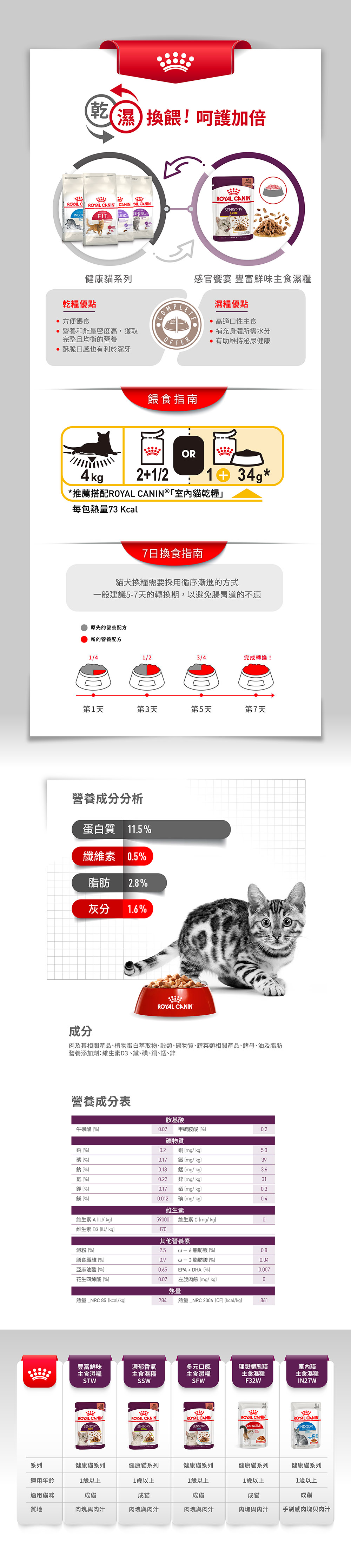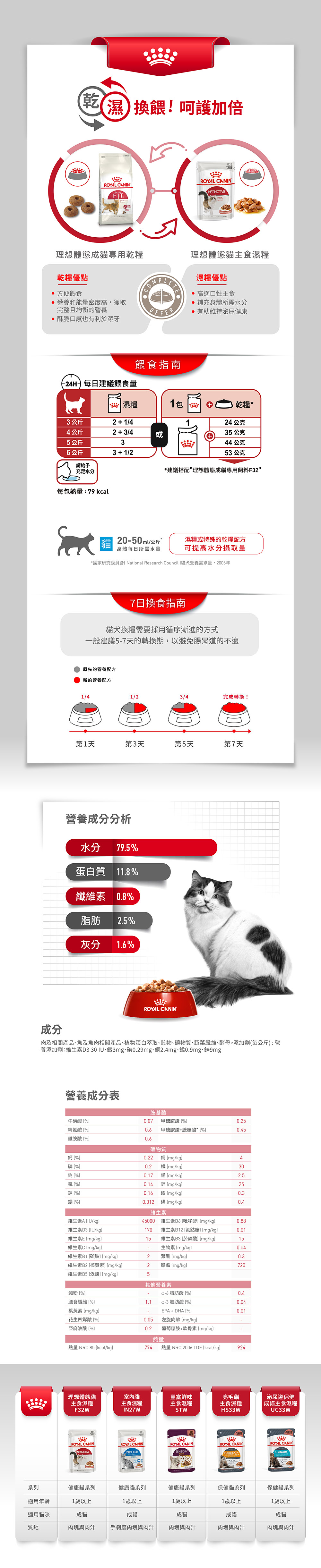 BC34W 離乳貓&母貓K36W 幼貓A30+12W 12歲老貓IN+7W 室內熟齡貓IN27W 室內貓S37W 絕育貓F+7W 理想體態7+歲 (貓用)F32W 理想體態 (貓用)SFW 多元口感 (貓用)SSW 濃郁香氣 (貓用)STW 豐富鮮味 (貓用)